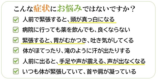 不安障害は様々な症状、タイプがあり、人によって症状の現れ方も違います。