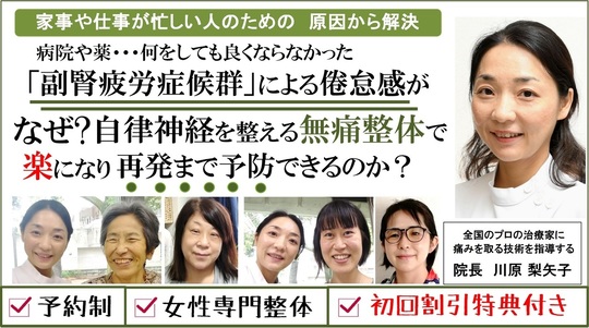 中野区沼袋の女性専門整体院|痛みと自律神経の専門家。頭痛、肩こり、腰痛、顎関節、更年期、産前産後、女性特有の慢性症状 あなたのお悩み聞かせて下さい
