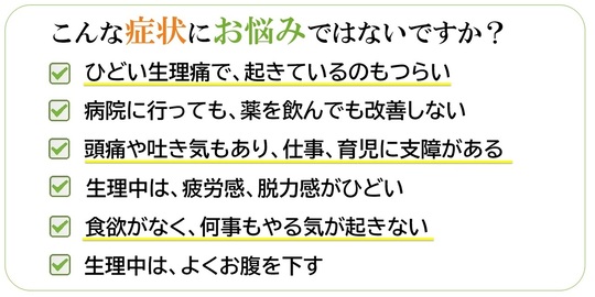 女性ならではの症状でお悩みの方は、ぜひ一度ご相談ください。