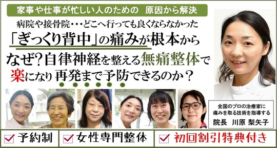中野区沼袋の女性専門整体院|痛みと自律神経の専門家。頭痛、肩こり、腰痛、顎関節、更年期、産前産後、女性特有の慢性症状 あなたのお悩み聞かせて下さい