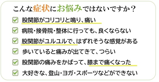 左股関節に違和感を感じ、次第に痛みに変わり睡眠にも影響が出てきました。
