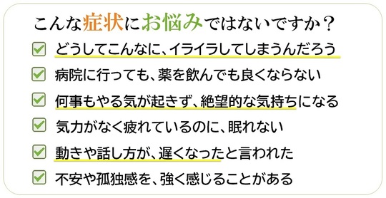 無理をしたり、考えすぎたりすると、それがストレスとなって、かえって症状が悪化してしまうこともあるので、ご心配な方は、ぜひ一度ご相談ください。