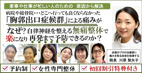 中野区沼袋の女性専門整体院|痛みと自律神経の専門家。頭痛、肩こり、腰痛、顎関節、更年期、産前産後、女性特有の慢性症状 あなたのお悩み聞かせて下さい