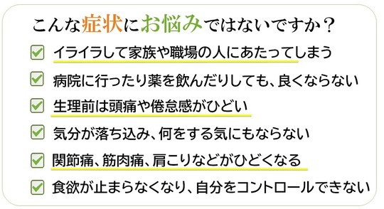 女性ならではの症状でお悩みの方は、ぜひ一度ご相談ください。