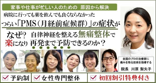 中野区沼袋の女性専門整体院|痛みと自律神経の専門家。頭痛、肩こり、腰痛、顎関節、更年期、産前産後、女性特有の慢性症状 あなたのお悩み聞かせて下さい