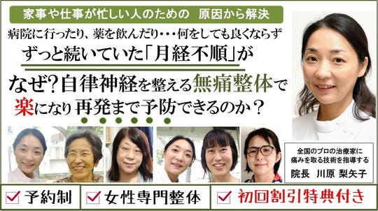 中野区沼袋の女性専門整体院|痛みと自律神経の専門家。頭痛、肩こり、腰痛、顎関節、更年期、産前産後、女性特有の慢性症状 あなたのお悩み聞かせて下さい