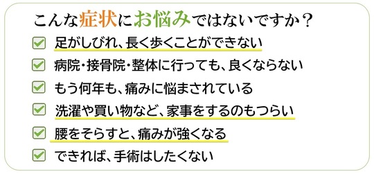 腰痛で、このようなことでお悩みではないですか?