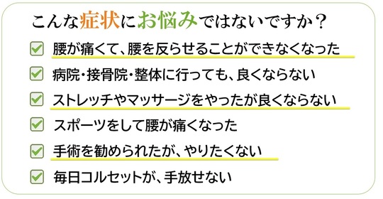 腰痛で、このようなことでお悩みではないですか?