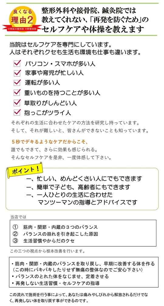 中野区沼袋の女性専門整体院|痛みと自律神経の専門家。頭痛、肩こり、腰痛、顎関節、更年期、産前産後、女性特有の慢性症状 あなたのお悩み聞かせて下さい