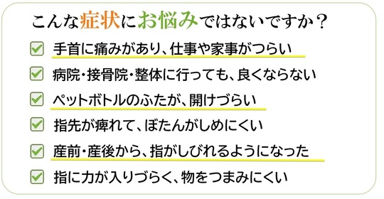 手根管症候群は、手の使い過ぎにより症状が悪化します。