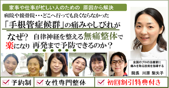 中野区沼袋の女性専門整体院|痛みと自律神経の専門家。頭痛、肩こり、腰痛、顎関節、更年期、産前産後、女性特有の慢性症状 あなたのお悩み聞かせて下さい