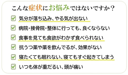 最初、不眠とうつの症状があり、こちらに伺いました。