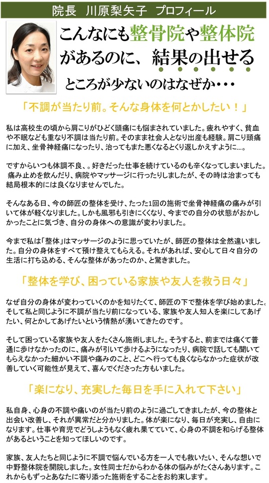 数ある病院、接骨院、、整体院などの中から、当店のホームページをご覧いただき、ありがとうございます。